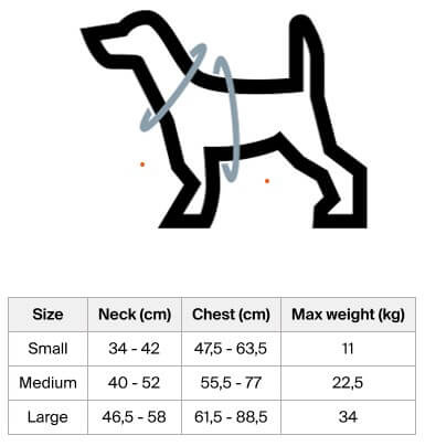 - Wymiary: szyja 40-52 cm; klatka 55.5-77 cm
