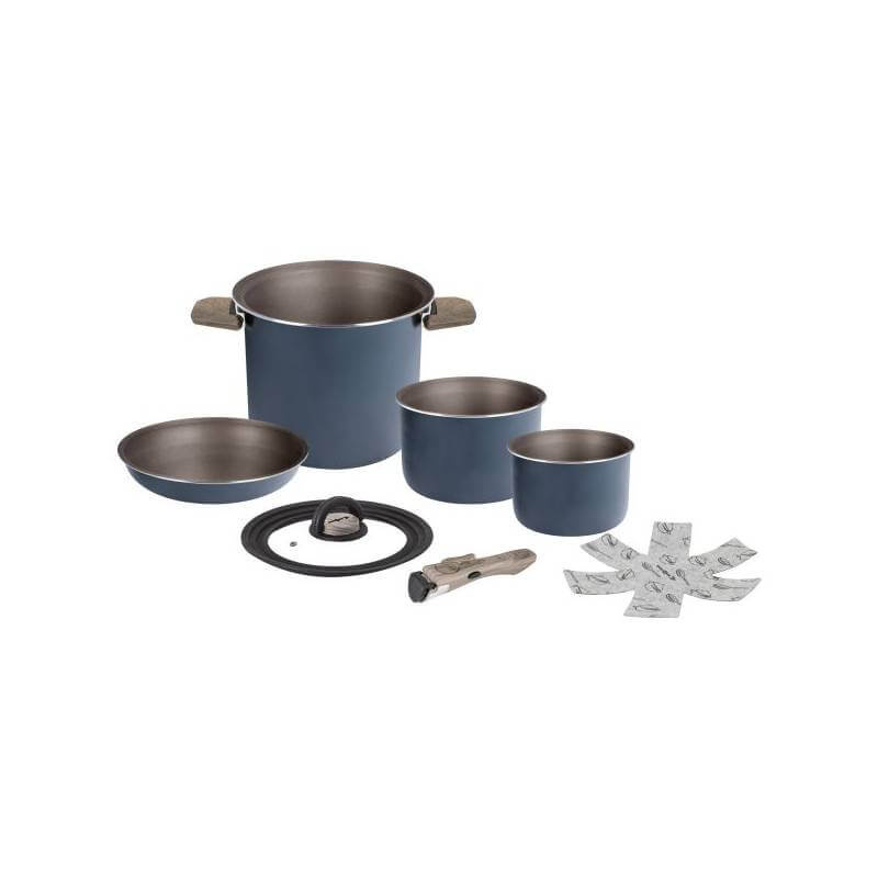 Zewnętrzne garnki i patelnie są wykonane z przetworzonego aluminium, dzięki czemu zestaw jest nie tylko przyjazny dla środowiska, ale także wyjątkowo wytrzymały i lekki. Składane uchwyty zapewniają kompaktowe i oszczędzające miejsce przechowywanie, idealne do ograniczonych przestrzeni magazynowych w kamperach i na łodziach. Zestaw jest również kompatybilny ze wszystkimi typami kuchenek, w tym indukcyjnych, i jest dostępny w trzech praktycznych kombinacjach rozmiarów. Odłączany uchwyt do wewnętrznych garnków i patelni uzupełnia zestaw funkcjonalnie i umożliwia jeszcze bardziej wszechstronne zastosowanie.