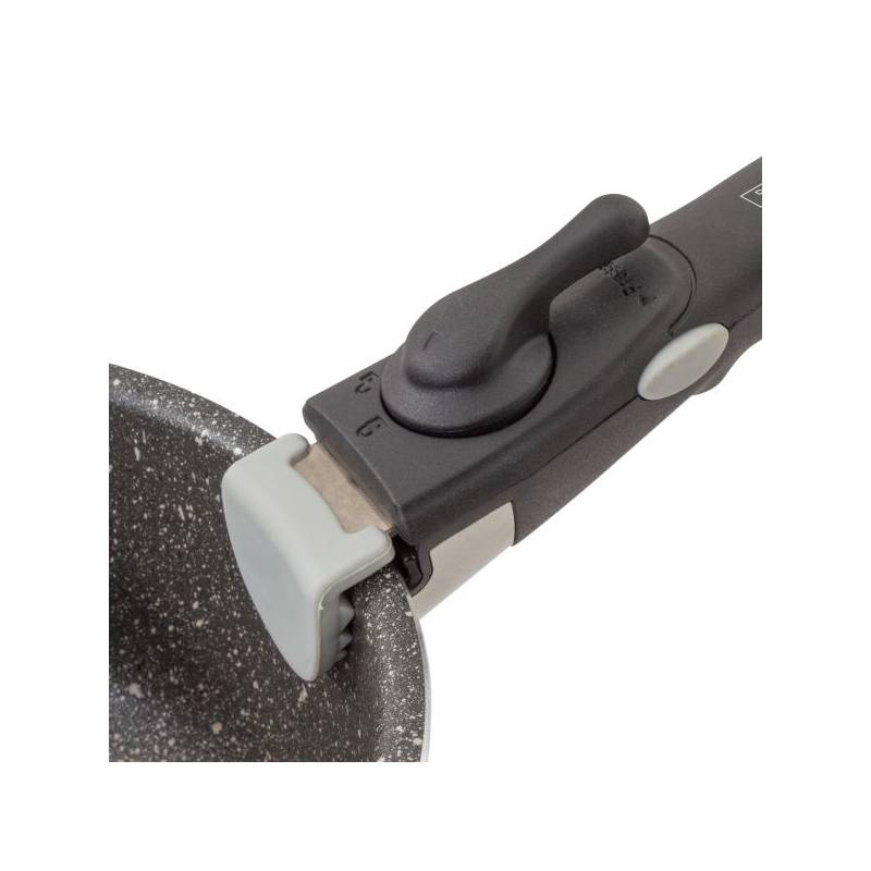 - Zawartość: rączka, 2 pokrywki, garnek, durszlak, rondel, patelnia, pas zabezpieczający