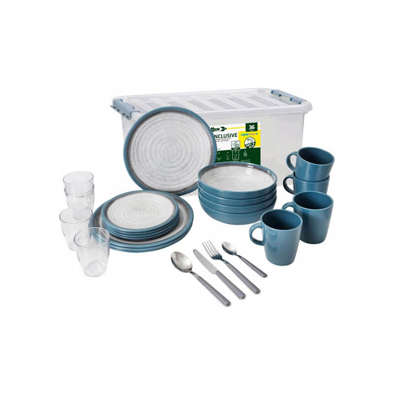 Zestaw obiadowy Brunner All Inclusive Tuscany to idealne rozwiązanie dla każdego miłośnika podróży i kempingu, poszukującego praktycznych i wysokiej jakości akcesoriów. Niezwykle wszechstronny, ten zestaw obiadowy z melaminy został stworzony z myślą o wygodzie i funkcjonalności w podróży, niezależnie od tego, czy jesteś właścicielem przyczepy kempingowej, kampera czy łodzi.
