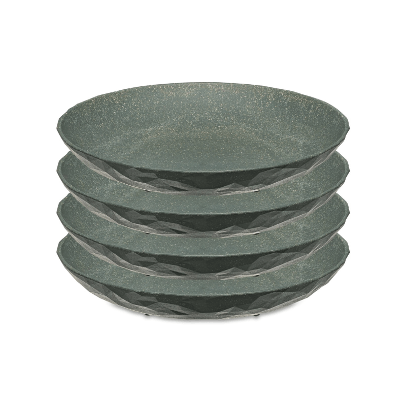 Zestaw talerzy firmy Koziol wyróżnia się na tle innych naczyń turystycznych - posiadają charakterystyczny, ciekawy design a dodatkowo są wykonane z tworzywa zawierającego celulozę i podlegają w 100% recyklingowi. Dodatkowo ich ogromnym atutem jest odporność na stłuczenia, odpryski i zniszczenia - materiał z którego są stworzone jest wysokiej jakości i bardzo dobrze sprawdzi się w trakcie wypraw kamperem czy przyczepą.