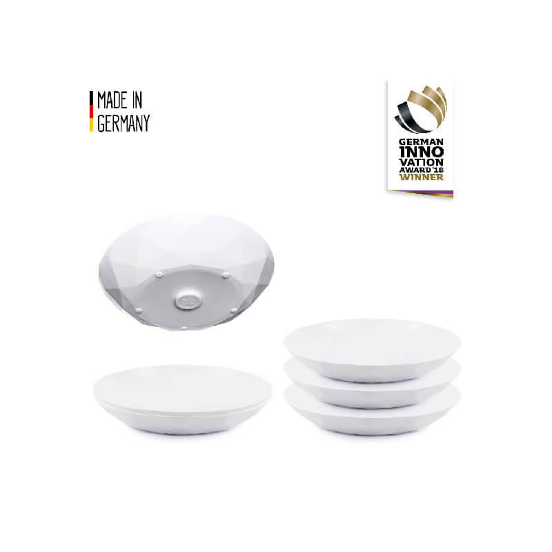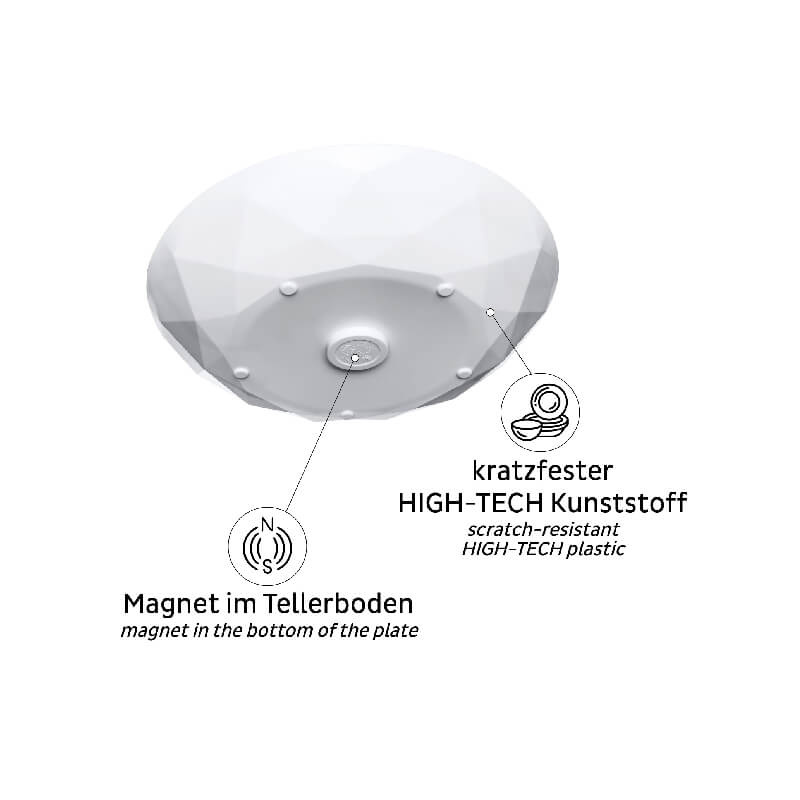 Talerze zostały wykonane z wysokiej jakości porcelany, która jest nie tylko trwała, ale również pięknie prezentuje się na stole. Każdy talerz jest wyposażony w magnetyczną podstawę, która umożliwia stabilne umieszczenie na stole. Dzięki temu, podczas jazdy kamperem, potrawy pozostają na swoim miejscu, bez obawy przed przewróceniem się czy rozlaniem.